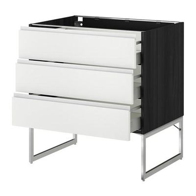 МЕТОД / МАКСИМЕРА Нплн шк 3 фрнт/3 средн ящика - 80x60x60 см, Нодста белый/алюминий, под дерево черный
