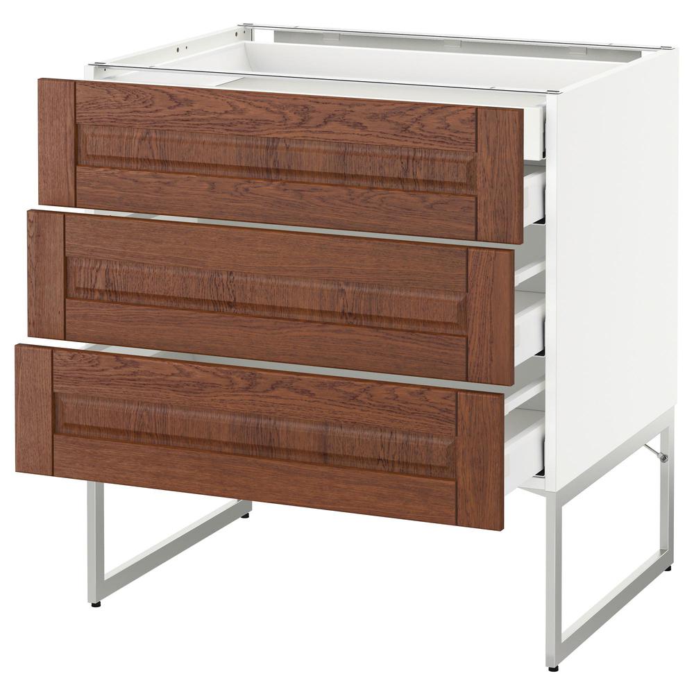 МЕТОД / МАКСИМЕРА Напольн шкаф 3фронт пнл/2низ/2ср ящ - белый, Филипстад коричневый, 80x60x60 см
