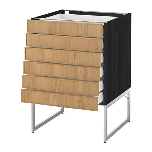 МЕТОД / МАКСИМЕРА Напольн шкаф 6фронт пнл/6 низ ящ - под дерево черный, Экестад дуб, 60x60x60 см