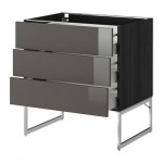 МЕТОД / МАКСИМЕРА Нплн шк 3 фрнт/3 средн ящика - 40x37x60 см, Рингульт глянцевый серый, под дерево черный