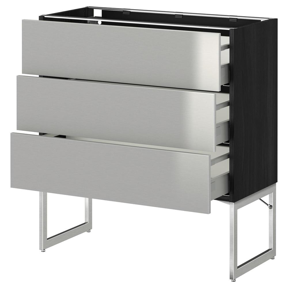 МЕТОД / МАКСИМЕРА Нплн шк 3 фрнт/3 средн ящика - под дерево черный, Гревста нержавеющ сталь, 80x37x60 см
