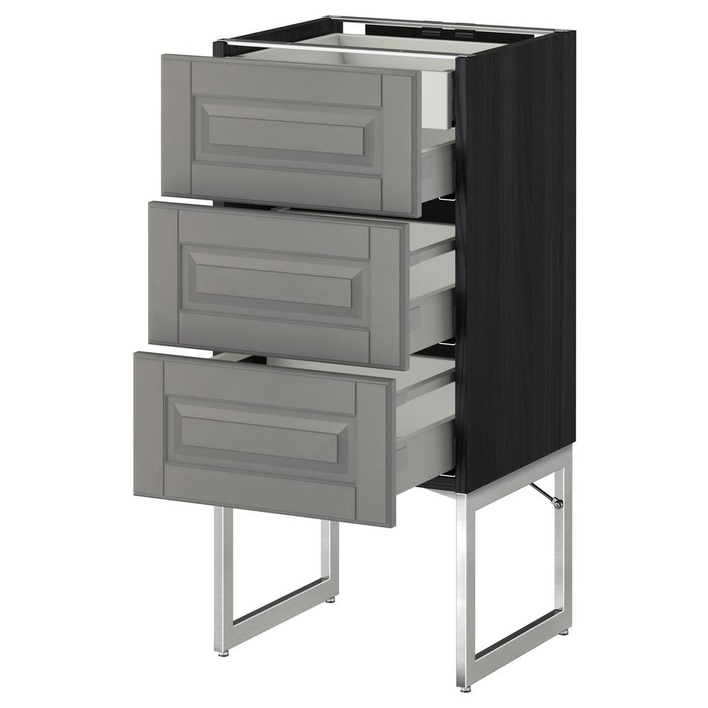 МЕТОД Напольн шкаф 3фронт пнл/2низ/2ср ящ - под дерево черный, Будбин серый, 40x37x60 см