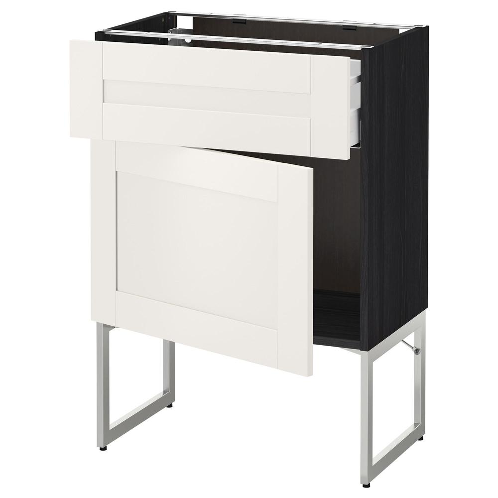 МЕТОД / МАКСИМЕРА Напольный шкаф с ящиком/дверью - под дерево черный, Сэведаль белый, 60x37x60 см