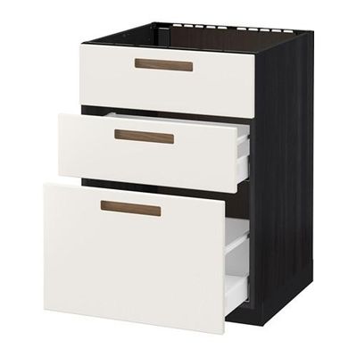 МЕТОД / МАКСИМЕРА Напольн шк п-мойку+3фрнт пнл/2ящ - 60x60 см, Мэрста белый, под дерево черный