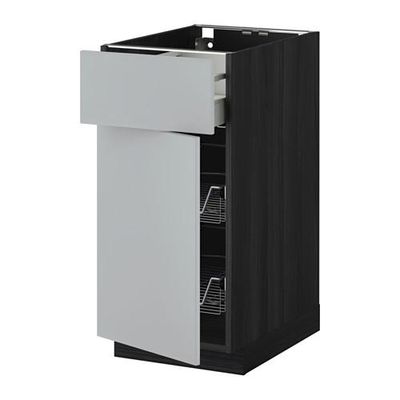 МЕТОД / МАКСИМЕРА Напольн шкаф с пров корз/ящ/дверью - 40x60 см, Веддинге серый, под дерево черный