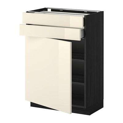 МЕТОД / МАКСИМЕРА Напольный шкаф с дверцей/2 ящиками - 60x37 см, Рингульт глянцевый кремовый, под дерево черный