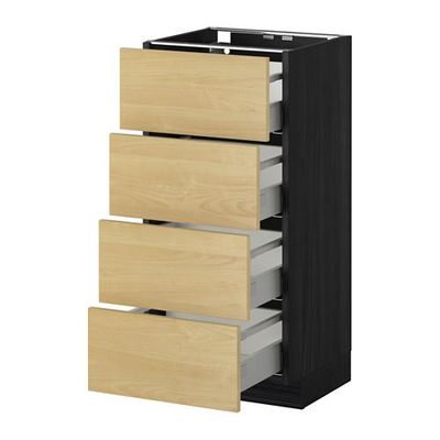 МЕТОД / МАКСИМЕРА Напольн шкаф 4 фронт панели/4 ящика - 40x37 см, Тингсрид под березу, под дерево черный