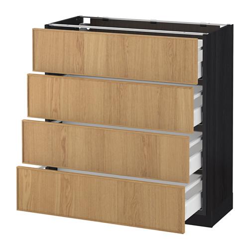 МЕТОД / МАКСИМЕРА Напольн шкаф 4 фронт панели/4 ящика - под дерево черный, Экестад дуб, 80x37 см