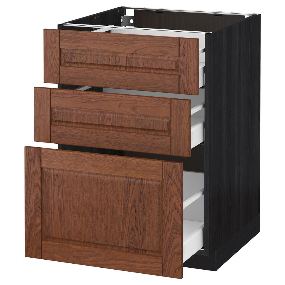 МЕТОД / МАКСИМЕРА Напольный шкаф с 3 ящиками - под дерево черный, Филипстад коричневый, 60x60 см