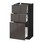МЕТОД / МАКСИМЕРА Напольный шкаф с 3 ящиками - 80x60 см, Рингульт глянцевый серый, под дерево черный