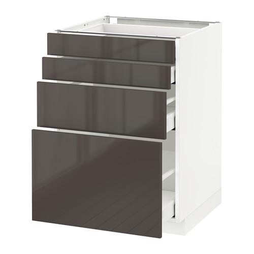МЕТОД / МАКСИМЕРА Напольн шкаф 4 фронт панели/4 ящика - 60x60 см, Рингульт глянцевый серый, белый