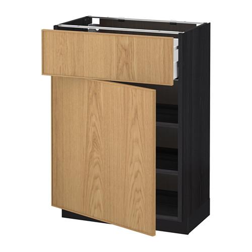 МЕТОД / МАКСИМЕРА Напольный шкаф с ящиком/дверью - под дерево черный, Экестад дуб, 60x37 см