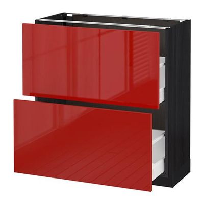 МЕТОД / МАКСИМЕРА Напольный шкаф с 2 ящиками - 80x37 см, Рингульт глянцевый красный, под дерево черный