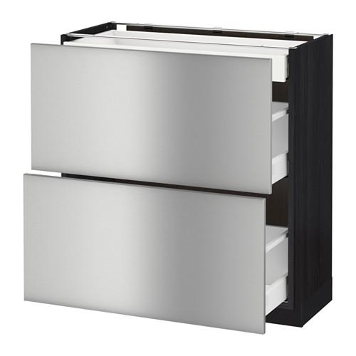 МЕТОД / МАКСИМЕРА Напольный шкаф/2фасада/3ящика - под дерево черный, Гревста нержавеющ сталь, 80x37 см