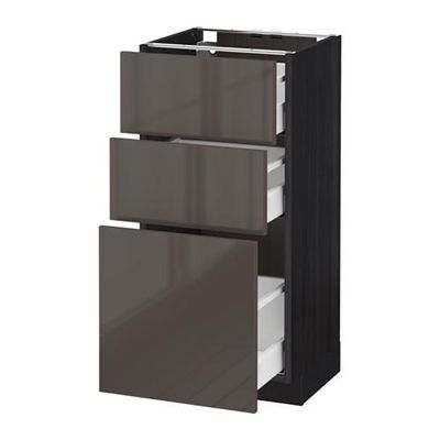 МЕТОД / МАКСИМЕРА Напольный шкаф с 3 ящиками - 40x37 см, Рингульт глянцевый серый, под дерево черный