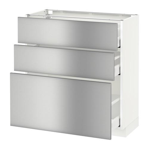 МЕТОД / МАКСИМЕРА Напольный шкаф с 3 ящиками - белый, Гревста нержавеющ сталь, 80x37 см