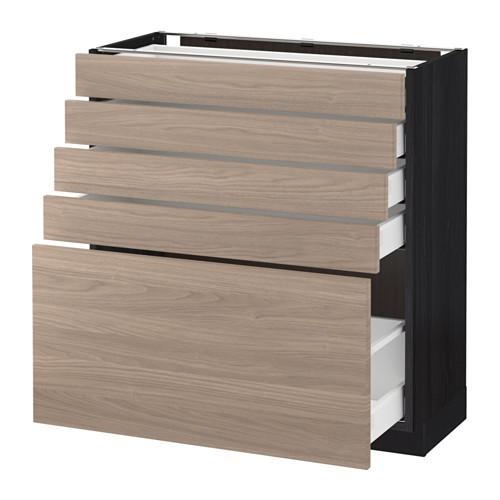 МЕТОД / МАКСИМЕРА Напольный шкаф с 5 ящиками - 80x37 см, Брокхульт под грецкий орех светло-серый, под дерево черный