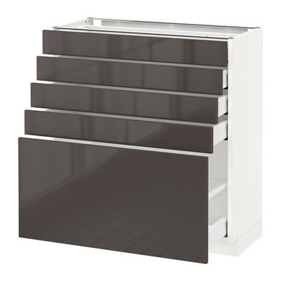 МЕТОД / МАКСИМЕРА Напольный шкаф с 5 ящиками - 80x37 см, Рингульт глянцевый серый, белый