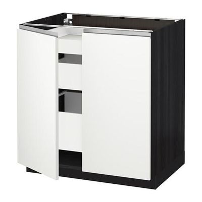 МЕТОД / МАКСИМЕРА Напольный шкаф с 2дверцами/3ящиками - Нодста белый/алюминий, под дерево черный