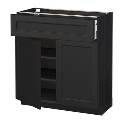 МЕТОД / МАКСИМЕРА Напольный шкаф+ящик/2дверцы - 80x37 см, Лаксарби черно-коричневый, под дерево черный