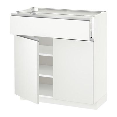 МЕТОД / МАКСИМЕРА Напольный шкаф+ящик/2дверцы - 80x37 см, Нодста белый/алюминий, белый