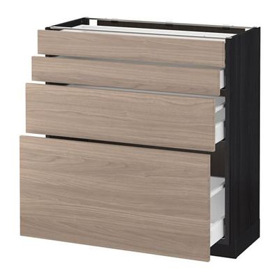 МЕТОД / МАКСИМЕРА Напольн шкаф 4 фронт панели/4 ящика - 80x37 см, Брокхульт под грецкий орех светло-серый, под дерево черный