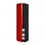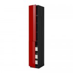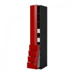 МЕТОД / МАКСИМЕРА Выс шкаф с плк/6 ящк/ дверц/4 фрнт - 60x60x220 см, Рингульт глянцевый красный, под дерево черный