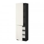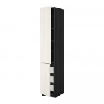 МЕТОД / МАКСИМЕРА Высокий шкаф+полки/3 ящика/2 дверцы - 60x60x200 см, Росдаль белый ясень, под дерево черный