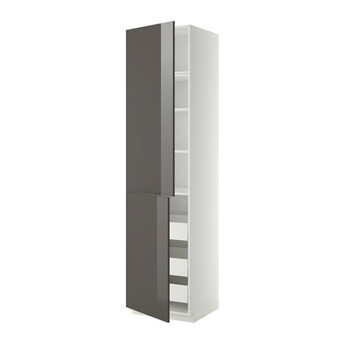 МЕТОД / МАКСИМЕРА Высокий шкаф+полки/3 ящика/2 дверцы - 60x60x240 см, Рингульт глянцевый серый, белый