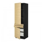 МЕТОД / МАКСИМЕРА Выс шкаф+полки/4 ящк/2двр/2фрнт - Лаксарби белый, под дерево черный