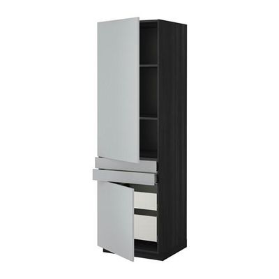 МЕТОД / МАКСИМЕРА Выс шкаф+полки/4 ящк/2двр/2фрнт - Веддинге серый, под дерево черный