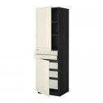 МЕТОД / МАКСИМЕРА Высок шкаф+полки/5ящк/2дверцы/2фрнт - под дерево черный, Будбин белый с оттенком, 60x60x240 см