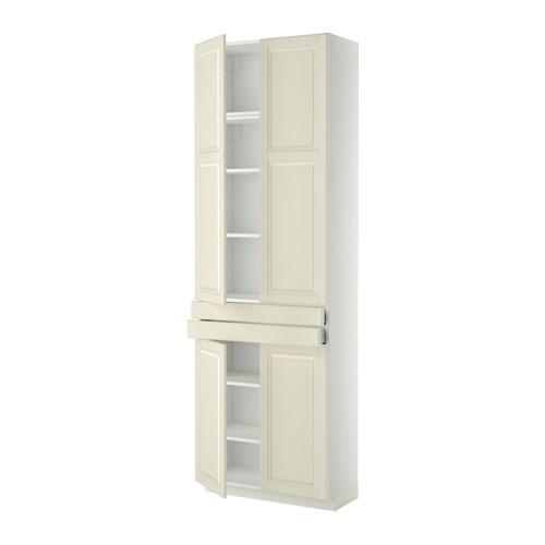 МЕТОД / МАКСИМЕРА Высокий шкаф+полки/2 ящика/4 дверцы - белый, Будбин белый с оттенком