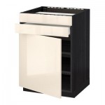 МЕТОД / МАКСИМЕРА Высок шкаф д духов+дверь/2 ящика - 60x60x220 см, Рингульт глянцевый кремовый, под дерево черный