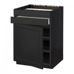 МЕТОД / МАКСИМЕРА Высок шкаф д/духовки/дверца/4ящика - 60x60x200 см, Лаксарби черно-коричневый, под дерево черный