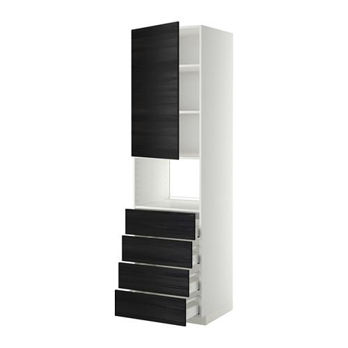 МЕТОД / МАКСИМЕРА Высок шкаф д/духовки/дверца/4ящика - белый, Тингсрид под дерево черный, 60x60x220 см