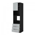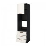 МЕТОД / МАКСИМЕРА Высок шкаф д/духовки/СВЧ/дверца/3ящ - 60x60x200 см, Мэрста белый, под дерево черный