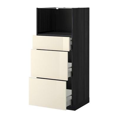 МЕТОД / МАКСИМЕРА Высокий шкаф д/СВЧ с 3 ящиками - Рингульт глянцевый кремовый, под дерево черный