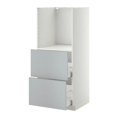 МЕТОД / МАКСИМЕРА Высокий шкаф с 2 ящиками д/духовки - Веддинге серый, белый