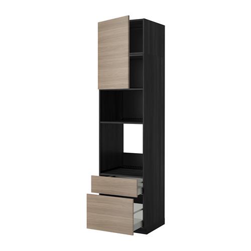 МЕТОД / МАКСИМЕРА Высок шкаф д/духовки/СВЧ/дверца/2ящ - 60x60x240 см, Брокхульт под грецкий орех светло-серый, под дерево черный