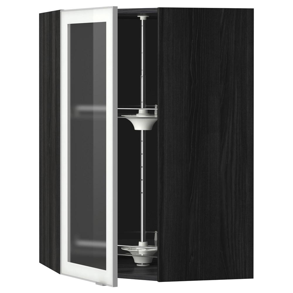 МЕТОД Углов навесн шк с врщ скц/сткл дв - под дерево черный, Ютис матовое стекло/алюминий, 68x100 см