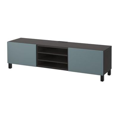 БЕСТО Тумба д/ТВ с ящиками - черно-коричневый/Вальвикен серо-бирюзовый, направляющие ящика, плавно закр