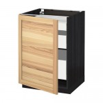 МЕТОД Наполный шкаф д/мойки/мусорн конт - под дерево черный, Торхэмн естественный ясень