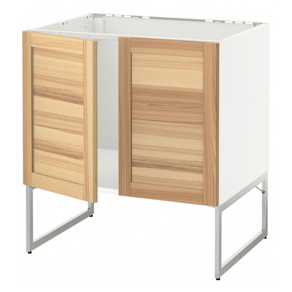 МЕТОД Напольн шкаф д раковины+2 двери - белый, Торхэмн естественный ясень