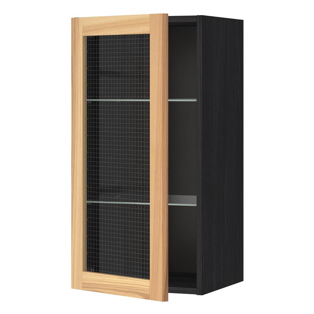 МЕТОД Навесной шкаф с полками/стекл дв - под дерево черный, Торхэмн естественный ясень, 40x80 см