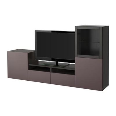БЕСТО Шкаф для ТВ, комбин/стеклян дверцы - черно-коричневый/Вальвикен темно-коричневый, прозрачное стекло, направляющие ящика,нажимные
