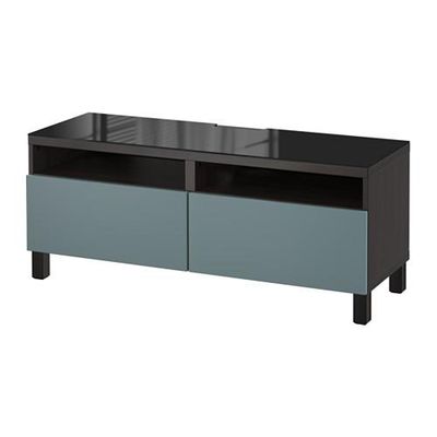 БЕСТО Тумба д/ТВ с ящиками - черно-коричневый/Вальвикен серо-бирюзовый, направляющие ящика,нажимные