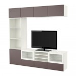 БЕСТО Шкаф для ТВ, комбин/стеклян дверцы - белый/Вальвикен темно-коричневый, прозрачное стекло, направляющие ящика, плавно закр