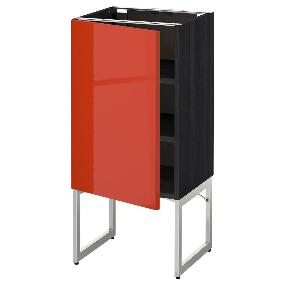 МЕТОД Напольный шкаф с полками - под дерево черный, Ерста глянцевый оранжевый, 40x37x60 см