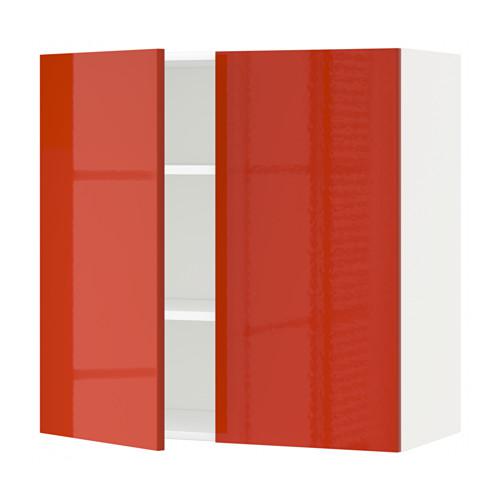 МЕТОД Навесной шкаф с полками/2дверцы - белый, Ерста глянцевый оранжевый, 80x80 см